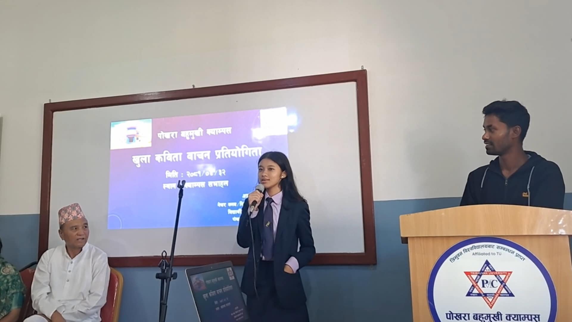 पोखराको पहिलो सामुदायिक क्याम्पस पोखरा बहुमुखी क्याम्पसले वार्षिक शैक्षिक क्यालेण्डर अनुसारको कविता वाचन प्रतियोगिता कार्यक्रम गरेको छ ।