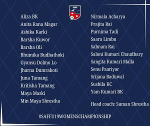 १९ वर्षमुनिको महिला साफ च्याम्पियनशिपका लागि २३ सदस्यीय नेपाली टोलीको अन्तिम नामावली सार्वजनिक भएको छ।