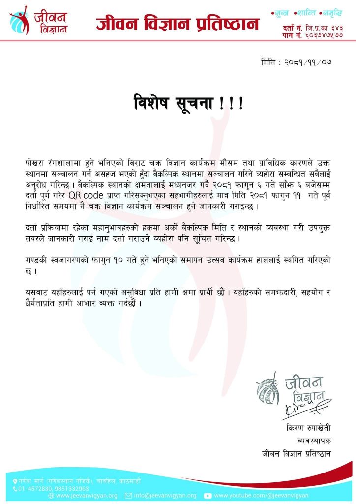 पाेखरा ।। पोखरा रंगशालामा फागुन १० गतेबाट हुने भनिएकाे "विराट चक्र विज्ञान" र गण्डकी स्वरोजगार...