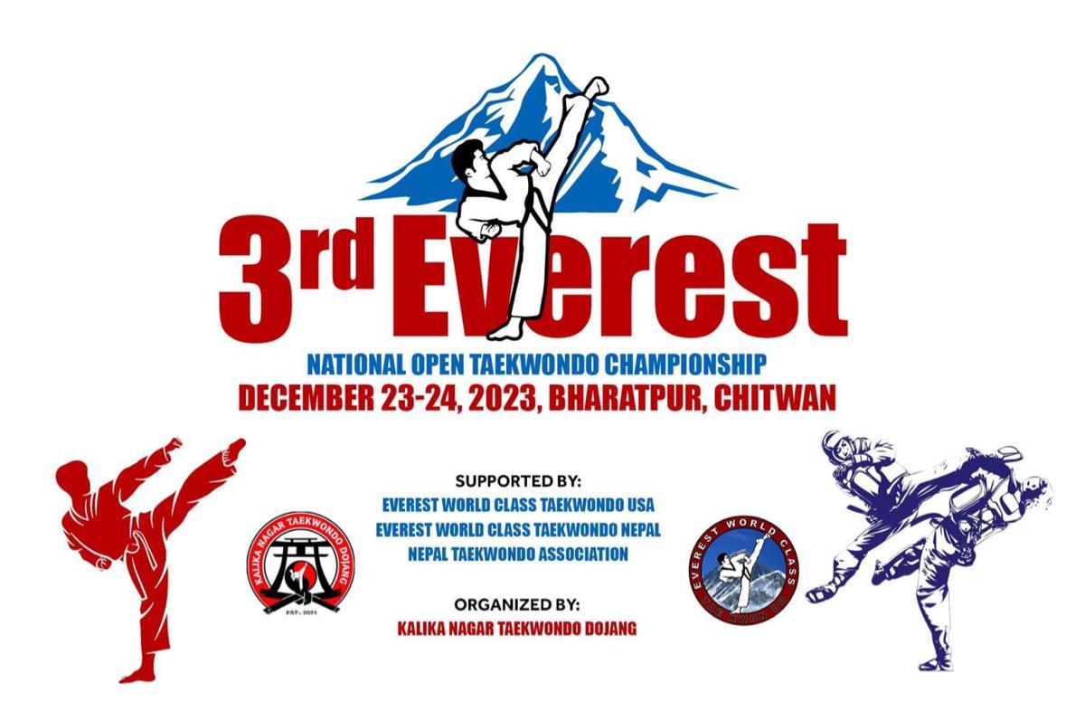 काठमाडौं ।। तेश्रो एभरेष्ट राष्ट्रिय खुला तेक्वान्दो प्रतियोगिता २०८० पौष ७ र ८ गते चितवनको भरतपुरमा...