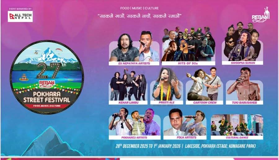 पौष १२, पोखरा ।। पोखरा सडक महोत्सव अन्तर्गत कोमागाने पार्कमा हुने सांगीतिक उत्सवमा पोखराका चर्चित...
