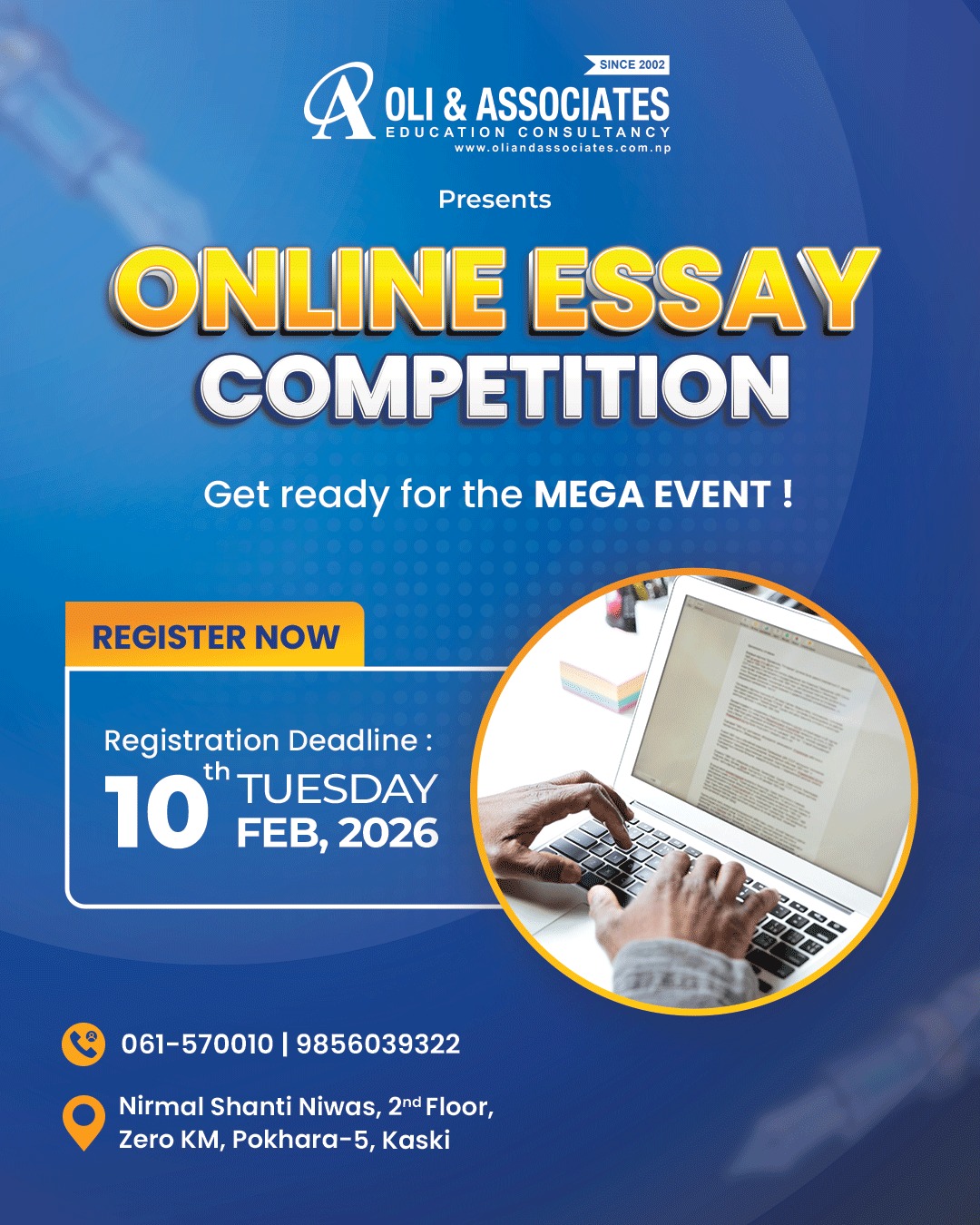 माघ २२, पोखरा ।। विगत २४ वर्षदेखि काठमाडौं र दश वर्षदेखि पर्यटकीय राजधानी पोखराबाट शैक्षिक परामर्श...
