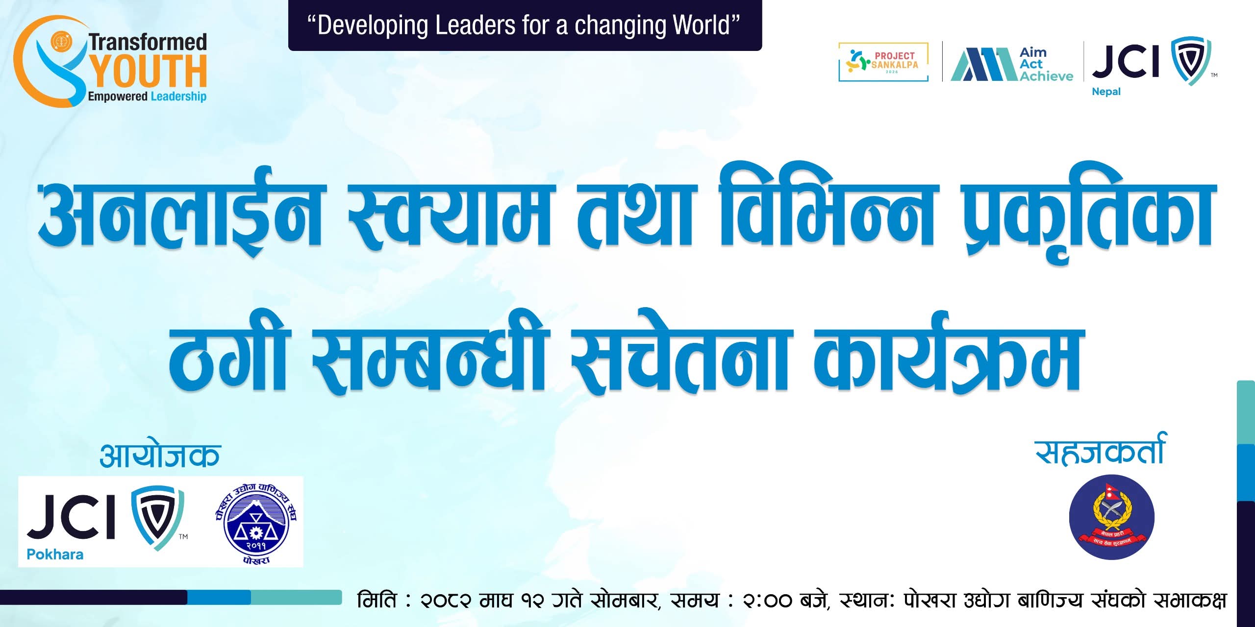 माघ १३, पोखरा ।। पोखरा जेसीज र पोखरा उद्योग वाणिज्य संघको संयुक्त आयोजना तथा जिल्ला प्रहरी कार्यालय...